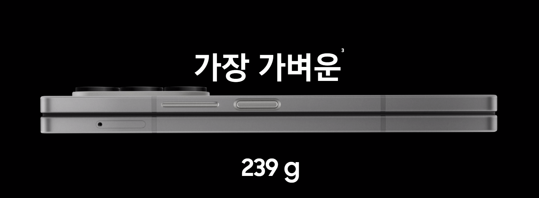 먼저 디자인부터 살펴볼게요. 갤럭시 폴드6는 전작인 폴드5보다 더 가볍고 슬림해졌습니다. 무게는 14g 줄어든 239g으로 가벼워졌고, 펼쳤을 때 높이는 1.4mm 줄어들고 가로 폭은 2.7mm 늘어나면서 더 정사각형에 가까운 디자인이 되었습니다. 두께도 펼쳤을 때 0.5mm, 접었을 때 1.3mm 줄어들어 그립감이 한층 더 좋아졌어요.